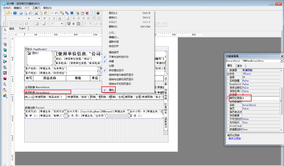 導航欄選擇“業務處理”—》“新開訂單”—》打印—》打印格式設計—》設計格式,進入打印模板的設計器界面,選中細項數據空白處,右鍵勾選顯示屬性每頁記錄數內輸入固定的數值,如下圖所示: