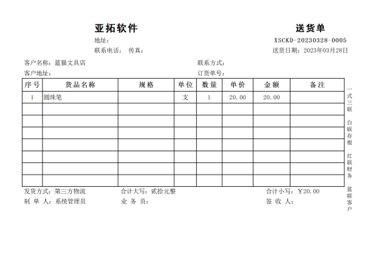 信管飛送貨單軟件信管飛RMS軟件信管飛倉庫管理軟件,都支持開單打印單據,軟件中內置了十幾種打印模板供客戶選擇使用,也支持自定義設計打印模板,有客戶打印時需要行數是固定的,我們以送貨單軟件為例設置下如何固定打印行數?