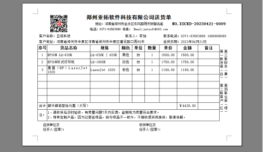 新開一個(gè)送貨單,打印模板預(yù)覽圖如下:
