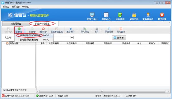 系統支持按供應商以及按商品兩種方式添加供應商價格信息,本文以信管飛rms軟件為例,介紹如何導入供應商價格信息。