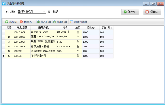 在供應商價格信息界面,選擇供應商,點擊導入明細,選擇導入的Excel文件,如下圖所示: