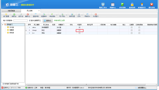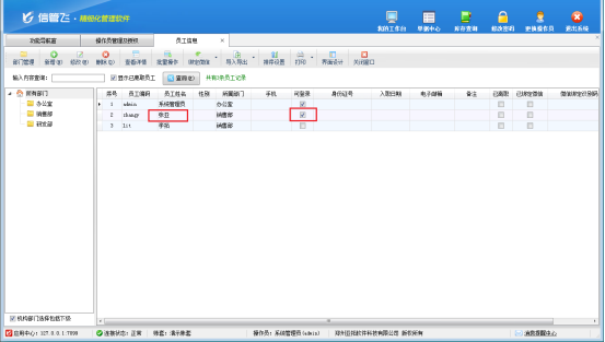 將員工設(shè)置為操作員之后,此員工即可登錄軟件,如下圖所示。