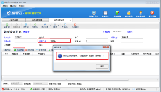 按商品填開發票時提示“軟件已啟用對賬單,請......”,如何解決?