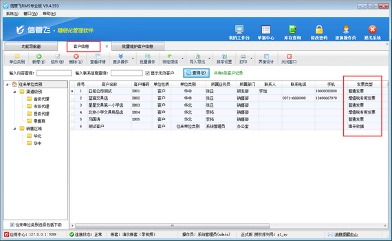 信管飛RMS支持開銷售單界面選擇發(fā)票類型,可以根據(jù)實際需要選擇不同的開發(fā)票方式。在使用過程中,不同客戶需要的發(fā)票類型可能會不一樣,為了提高開單效率,有時需要對不同的客戶設(shè)置默認(rèn)發(fā)票類型,方便開單選擇客戶之后直接進行調(diào)取,本篇文章介紹一下如何批量設(shè)置客戶的默認(rèn)發(fā)票類型?