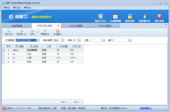 統(tǒng)計(jì)與分析:支持統(tǒng)計(jì)員工的計(jì)件工資數(shù)據(jù),并生成各種報(bào)表和分析圖表。這樣,企業(yè)就能夠清晰地了解員工的工資變化趨勢(shì),為后續(xù)的薪酬調(diào)整提供有力支持。
