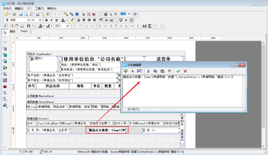 在模板設(shè)計(jì)器中選擇贈(zèng)品對(duì)應(yīng)的合計(jì)文本框,雙擊打開文本框,調(diào)用表達(dá)式合計(jì)值:[Sum([單據(jù)明細(xì)."數(shù)量"],DetailData1,1,[單據(jù)明細(xì)."贈(zèng)品"]=1)],然后保存模板并預(yù)覽可看到已顯示合計(jì)。如下圖所示: