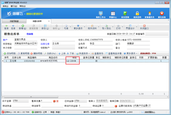 參數保存后,在功能導航窗點擊“銷售管理”—》“銷售出庫單”,新增銷售單,商品規格信息可以正常修改。如圖所示: