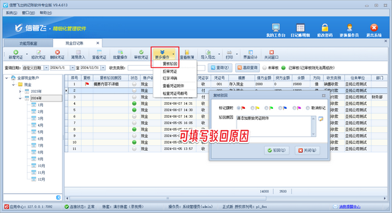 信管飛出納記賬軟件:可復核駁回憑證,提升財務管理效率