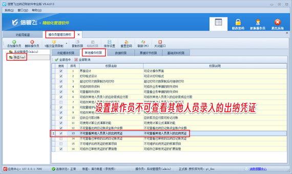 信管飛出納記賬軟件通過權限管理功能,實現了操作員之間的數據隔離。每個操作員只能查看和操作自己錄入的出納憑證,無法訪問其他操作員的憑證數據。這樣的設計,不僅保護了數據的隱私性,還避免了因誤操作或惡意行為導致的數據泄露風險。