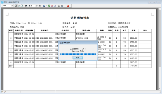 出現(xiàn)上圖提示信息窗口,一直處于正在準(zhǔn)備報表窗口無法導(dǎo)出Excel文件,原因是桌面已存在“亞拓軟件科技對賬單”Excel表格并且表格處于打開狀態(tài),再次導(dǎo)出相同名稱的對賬單表格。