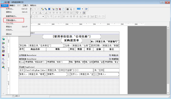 單據(jù)界面點擊打印----打印格式設(shè)計----點擊設(shè)計格式,進去模板設(shè)計器界面,在模板設(shè)計器界面調(diào)整打印紙張頁面設(shè)置。