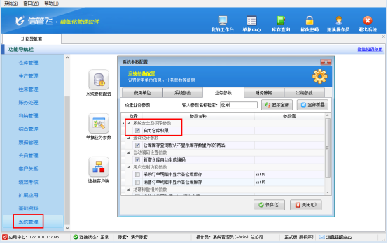 信管飛RMS支持“倉庫權限”功能,管理員只需在“系統參數配置”中勾選“啟用倉庫權限”,即可開啟分級管理模式。該功能簡單易用,無需復雜操作,輕松滿足企業對多倉庫、多人員協同管理的核心需求。