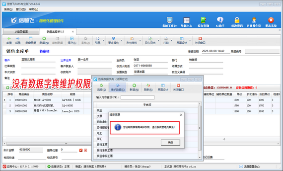 歡迎下載試用這款支持設置操作員數據字典維護權限進銷存軟件信管飛RMS
