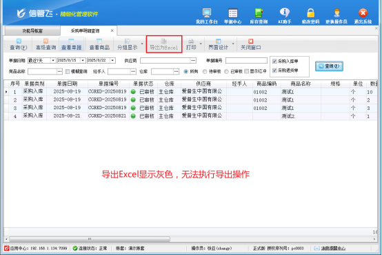 此文章相關演示視頻:操作員無法導出采購單明細,如何解決?