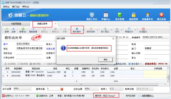 信管飛RMS軟件最新版支持在原有審核單據(jù)基礎(chǔ)上添加單據(jù)確認(rèn)功能,單據(jù)確認(rèn)后無法再修改,已審核未確認(rèn)可以繼續(xù)反審修改單據(jù),未避免確認(rèn)功能操作員誤操作,軟件支持設(shè)置操作員的單據(jù)確認(rèn)權(quán)限,本文以“信管飛RMS軟件”為例進行示范。 演示視頻觀看鏈接:信管飛RMS軟件如何控制操作員的單據(jù)確認(rèn)權(quán)限演示視頻&nbs