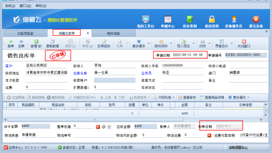 信管飛RMS軟件支持新開銷售出庫單引用銷售訂單,但是部分用戶在使用信管飛RMS軟件的過程中不知道銷售退貨單如何引用銷售訂單,下面具體介紹下信管飛RMS軟件退貨單中如何引用新增訂單? 首先先開一個銷售訂單,保存并審核,如下圖所示: 在功能導航窗點擊“系統管