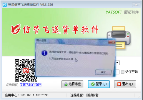 演示視頻觀看鏈接:登錄軟件提示連接數(shù)據(jù)庫失敗解決方法演示視頻 部分用戶在登錄軟件時可能會提示“連接數(shù)據(jù)庫失敗,請檢查Firebird數(shù)據(jù)庫引擎是否已啟動以及連接參數(shù)是否正確!”,導(dǎo)致軟件登錄不上,如下圖所示: 出現(xiàn)這