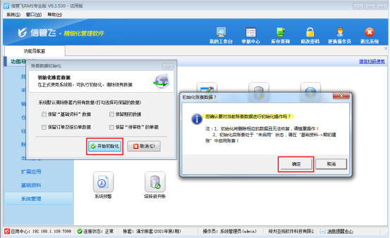 此文章演示視頻觀看鏈接:信管飛rms賬套初始化演示視頻 賬套初始化一般用于在正式使用軟件前,對賬套中的數(shù)據(jù)進(jìn)行初始化,以便重新錄入數(shù)據(jù)。也可以在開賬后,發(fā)現(xiàn)期初數(shù)據(jù)有問題時,對數(shù)據(jù)進(jìn)行初始化,以便重新開始錄入期初。賬套數(shù)據(jù)初始化后,會直接刪除相應(yīng)的數(shù)據(jù),因此務(wù)必提前做好備份,謹(jǐn)慎操作! &n