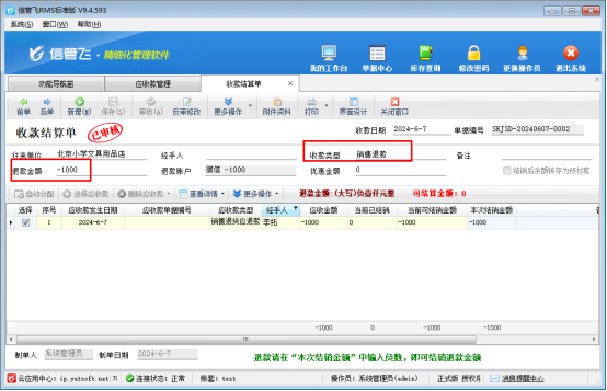 信管飛RMS軟件是集進銷存、記賬一體的軟件,軟件默認開進出庫單據生成對應的應收應付款,有客戶存在不退貨僅退款的情況,這種在軟件中應該如何登記?本文以信管飛RMS標準版示范下。     在功能導航窗點擊往來管理,打開應收款管理,應收款管理界面點擊“新增”按鈕,收款類型選擇“退貨應退款”,應收類型為固定的,僅退款可