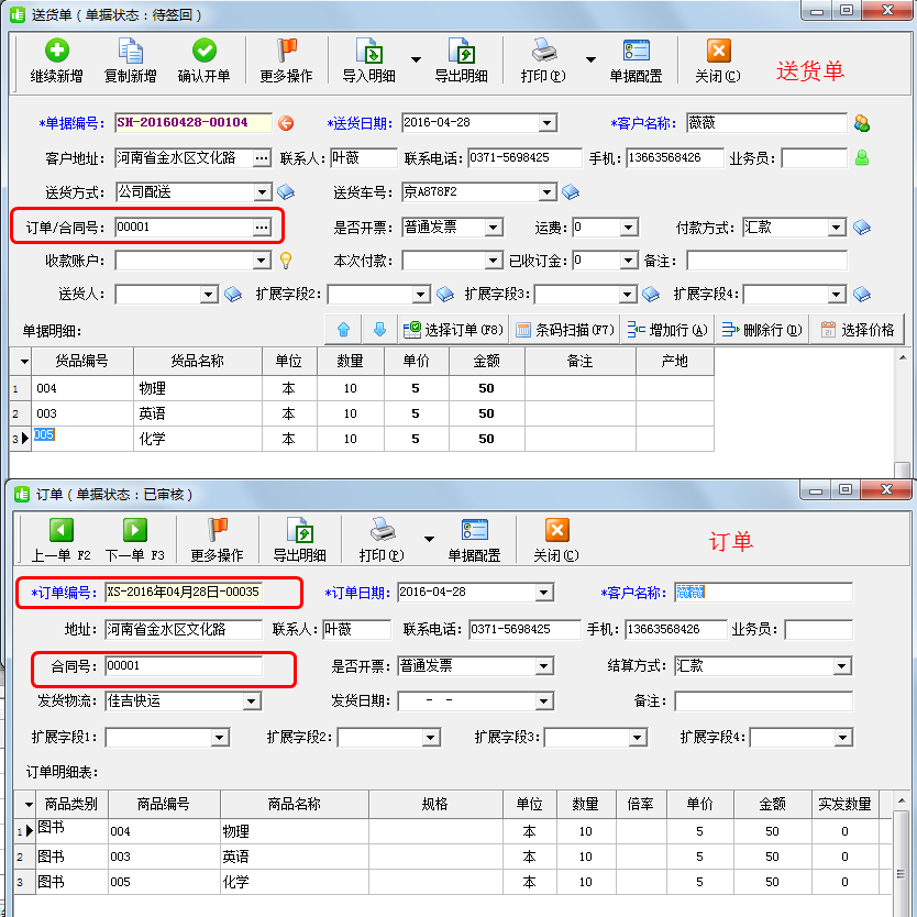 紅管家送貨單軟件中新增送貨單可以引用訂單,送貨單引用訂單時“訂單/合同號”默認是調取的訂單編號,最近部分用戶反映,送貨單引用訂單時“訂單/合同號”是否可以調取訂單中手動錄入的合同號,如何設置? 送貨單引用訂單時默認是調取的訂單的訂單編號,如下圖所示:訂單/合同號”調取訂單編號如何設置“訂單/合同號”引用訂單中合同號?
