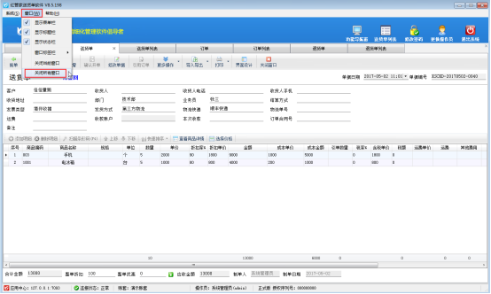 紅管家送貨單軟件、紅管家倉庫管理軟件、紅管家出納記賬軟件、紅管家票據(jù)打印軟件和亞拓管理軟件都可以同時打開多個業(yè)務單據(jù)窗口,方便用戶對不同的業(yè)務單據(jù)進行切換窗口查看信息等操作。打開多個窗口界面后,需要關閉這些已打開的窗口時,可以逐個關閉各個窗口,也可以一次性關閉所有窗口,如何快速關閉所有已打開窗口呢? 我們以送貨單軟件為例,示