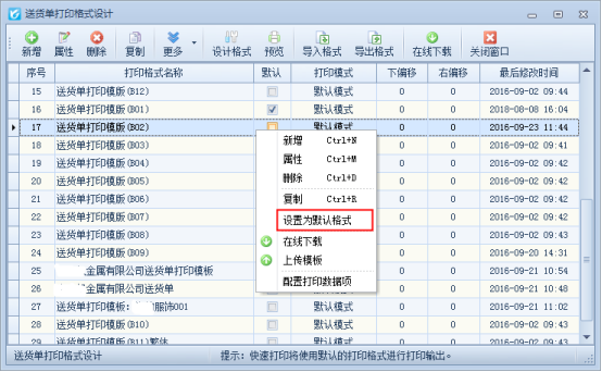 信管飛送貨單軟件、信管飛RMS軟件、信管飛倉庫管理軟件等,在開單界面都內置了好幾種打印格式,除此之外,軟件也支持自定義設計打印模板格式,為了開單打印單據方便,軟件可以把常用的模板設置為默認模板,開單保存后直接進行打印操作。不需要再次選擇模板進行打印。 本文以信管飛送貨單為例,示范下如何設置常用的打印模