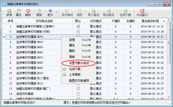 信管飛送貨單軟件、信管飛RMS軟件、信管飛倉庫管理軟件等在軟件內(nèi)都內(nèi)置了多種打印格式,除此之外,軟件也支持自定義設(shè)計打印格式模板,為了開單打印單據(jù)方便,軟件可以把常用的模板設(shè)置為默認(rèn)模板,開單保存后直接進行打印操作。不需要再次選擇模板進行打印。 本文以信管飛RMS為例,示范下如何設(shè)置常用的打印模板為默認(rèn)模板。首先打開銷售出庫
