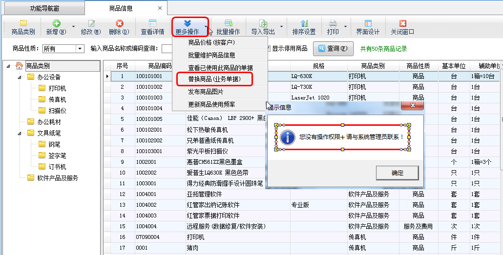 信管飛RMS、信管飛倉庫管理軟件、信管飛送貨單軟件等支持設置多個操作員登錄軟件,對登錄的操作員軟件可控制操作員權(quán)限。開單過程中可能存在單據(jù)商品信息輸入錯誤現(xiàn)象,可在基礎資料—》商品信息中對錯誤商品進行替換。為避免多個操作員重復替換出錯,可設置操作員不可批量替換商品(業(yè)務單據(jù))的權(quán)限,指定一個操作員允許操作。 本文以信管飛送貨