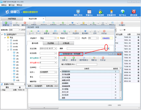 信管飛RMS標準版和專業版都包括出納模塊,可以登記出納日記賬憑證,出納憑證摘要默認可以手動隨意輸入。有些客戶對出納憑證摘要需要進行規范管理,登記憑證時摘要只能選擇不能隨意輸入該如何設置呢?本篇文章以信管飛RMS專業版為例介紹一下如何設置出納憑證摘要只能選擇不能隨意輸入。 在功能導航窗點擊“系統管理”——》“系統參數配置”——