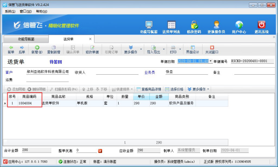 信管飛系列軟件都支持設置界面顯示風格,可設置界面的顯示高度和字體大小,本篇文章以“信管飛送貨單軟件”為例。示范下如何調整開單界面的標題行和數(shù)據項的行高。 調整前行高如下圖所示: 登錄軟件界面,在左上角的系統(tǒng)按鈕下選擇“界面顯示設置”可進入界面顯示調整界