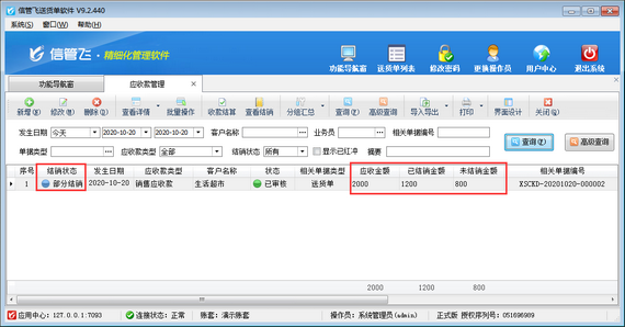 收款結(jié)算單用來登記收款信息(收款對象即客戶、收款賬戶、收款金額、經(jīng)手人等),并結(jié)銷應(yīng)收款記錄。正常情況下,應(yīng)收金額為多少,客戶需支付我們多少貨款,但是部分情況下,客戶支付給我們貨款時可能因為各種原因只能給我們支付其中一部分,然后過段時間在支付剩余貨款。本篇文章以送貨單打印軟件為例演示一下部分收款的情況下如何開收款結(jié)算單。 如