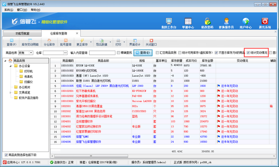 信管飛RMS、信管飛倉庫管理軟件可以對商品庫存進行統(tǒng)計,也支持統(tǒng)計商品近期的出庫情況,可以統(tǒng)計近半年、近一年無出庫的商品,方便對商品出庫情況進行管理。本篇文章以倉庫管理軟件為例介紹下倉庫管理軟件中如何統(tǒng)計近期無出庫的商品。 在功能導(dǎo)航窗中點擊“倉庫管理”—》“倉庫庫存查詢”,即可進入倉庫庫存查詢界面,勾選“統(tǒng)計變動情況”,再