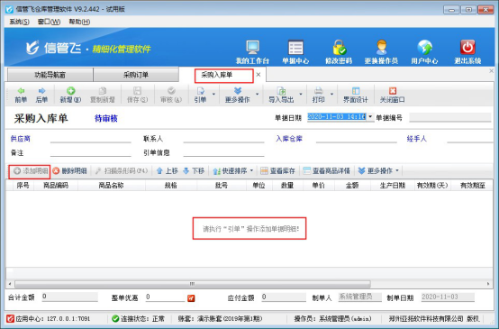 信管飛倉庫管理軟件、信管飛RMS軟件等支持管理倉庫庫存,倉庫庫存的增減根據(jù)對(duì)應(yīng)的采購入庫單和銷售出庫單審核后自動(dòng)計(jì)算,有部分用戶下采購單時(shí)先提交一個(gè)訂單,然后采購員根據(jù)訂單進(jìn)行實(shí)際采購,采購?fù)瓿珊筮M(jìn)行入庫操作,為避免手動(dòng)輸入出錯(cuò),軟件支持設(shè)置采購入庫單只能通過引用訂單生成。本文以“信管飛倉庫管理軟件”為例,示范下如何進(jìn)行設(shè)置?