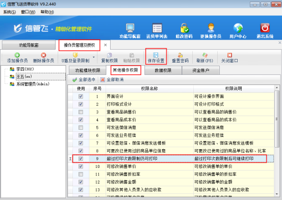 信管飛送貨單軟件、信管飛RMS、信管飛倉庫管理軟件都支持設(shè)置報(bào)表的打印次數(shù),以此來限制單據(jù)的打印次數(shù)。通過設(shè)置這個(gè)參數(shù),可以避免開單人員開單打印后又修改單據(jù),出現(xiàn)軟件中的單據(jù)內(nèi)容與打印出來的單據(jù)不一樣的情況。下面我們以信管飛送貨單軟件為例演示一下具體的操作步驟。 設(shè)置報(bào)表打印次數(shù)提示: 登