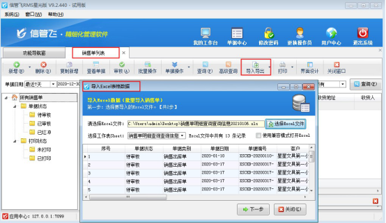 信管飛RMS軟件是集采購管理、銷售管理、往來管理等一體的進(jìn)銷存軟件,軟件支持直接進(jìn)行開單,也支持通過Excel文件批量導(dǎo)入單據(jù)。本文示范下如何通過Excel批量導(dǎo)入單據(jù)。 在功能導(dǎo)航窗點擊“系統(tǒng)管理”—》“系統(tǒng)參數(shù)配置”,選擇“業(yè)務(wù)參數(shù)”,勾選參數(shù)“Excel導(dǎo)入銷售單(按單據(jù)編號導(dǎo)入不同單據(jù))”,保