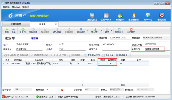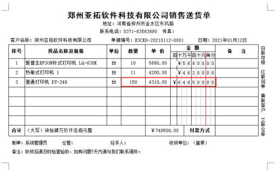 信管飛送貨單軟件、信管飛RMS軟件等都支持打印單據(jù),軟件內(nèi)置了十幾種打印模板以供使用。默認(rèn)打印模板的金額是按財務(wù)樣式進(jìn)行顯示的,默認(rèn)金額格式是按7位顯示,只顯示到萬,如果出現(xiàn)金額超過萬位會顯示不出來(如下圖所示),本文以“信管飛送貨單軟件”為例,示范下如何修改金額樣式的顯示數(shù)字個數(shù)。 打開送貨單開單界