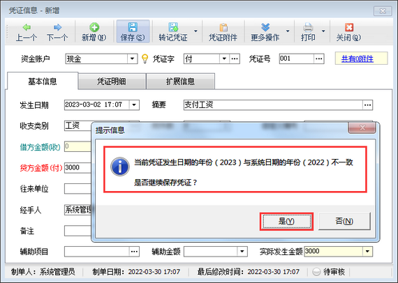 出納記賬軟件登記日記賬憑證時(shí),發(fā)生日期默認(rèn)取電腦操作系統(tǒng)日期,另外如需要補(bǔ)錄出納憑證,系統(tǒng)也支持修改日記賬憑證的發(fā)生日期進(jìn)行補(bǔ)錄出納憑證,部分用戶在登記完日記賬憑證后可能會(huì)出現(xiàn)找不到已保存的出納憑證的情況,此種情況下可放大查詢?nèi)掌诜秶M(jìn)行查詢,另外,軟件也支持設(shè)置錄入出納憑證時(shí)發(fā)生日期的年份與系統(tǒng)日期的年度不一樣時(shí)進(jìn)行提醒功能,本篇文章介紹一下設(shè)置方法。&nb